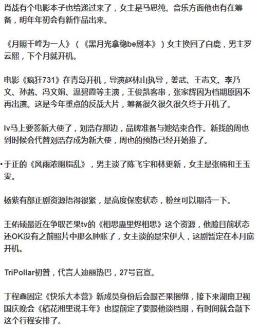 3. 粉丝期待:粉丝们对明星的新作品、新恋情等充满期待,周二爆料的新闻往往能满足他们的好奇心。